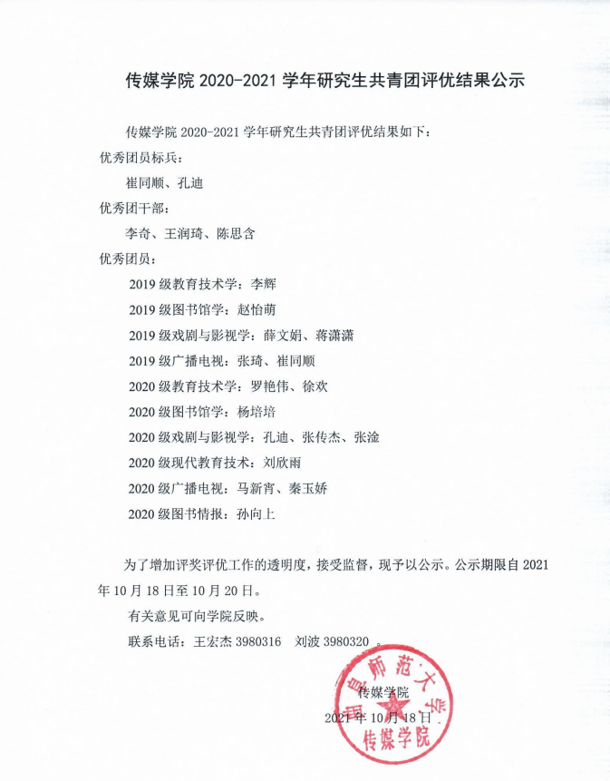 【来源:老虎机 2020-2021学年研究生共青团评优结果公示 | 发布日期:2021-10-19 】