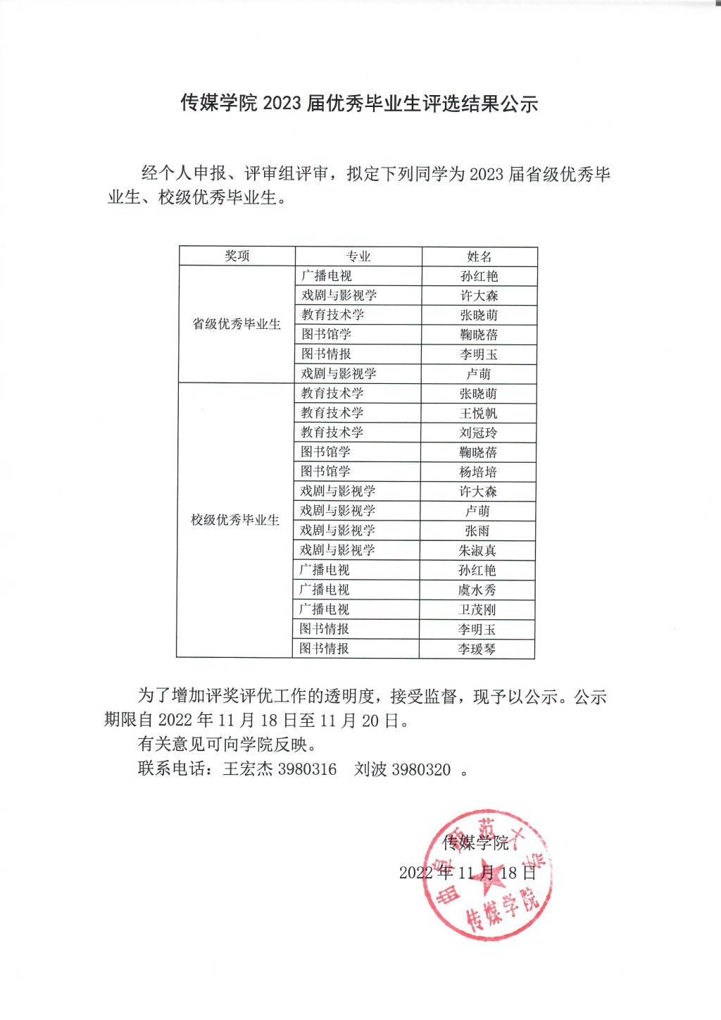 老虎机 2023届优秀毕业生评选结果的公示公告