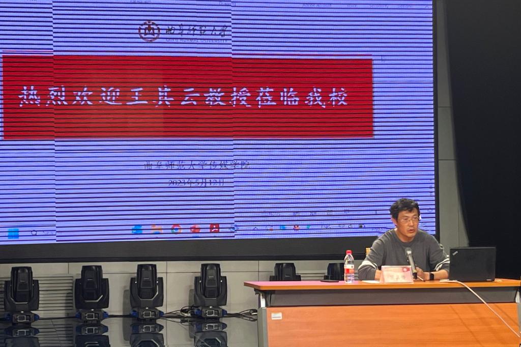 报告会上,王其云教授对南洋理工大学基本情况进行了介绍,并从“面对面的课堂学习和在线学习的优点和局限性”、“什么是混合同步学习”、“混合式学习的定义”以及“如何开展混合式学习”四个方面展开了具体的讲解。通过具体例子形象生动的说明了如何去提升和监控线上学生的认知投入度以及相关策略。根据同学们的要求,王其云教授还介绍了南洋理工大学读研的条件要求、课程结构等情况。最后,徐振国、吴焕庆、谢万里分别与王其云教授进行了互动交流。