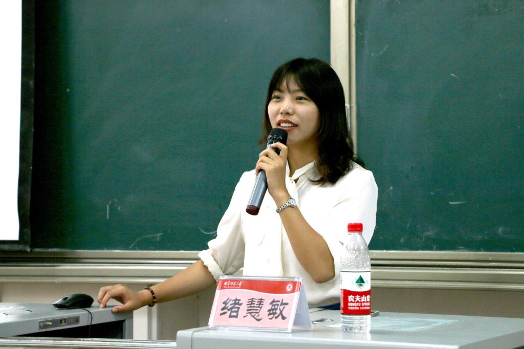 会议伊始,绪慧敏进行自我介绍,通过讲述自身在大学期间的经历,激励全体18级学生奋勇拼搏,劝诫18级学生妥善处理人际关系,珍惜大学时光。接着,绪慧敏对同学们的学业规划给予建议,要求同学们合理规划大学生活,及时做好考研准备工作,稳步推进学习计划的实施。随后,绪慧敏就校规校纪问题进行重点强调,对违章用电、宿舍晚归、饲养宠物、宿舍卫生等问题进行着重说明,并公示了违规违纪人员的处分标准。此外,绪慧敏就课余兼职问题发表意见,希望课余兼职的同学注意自身安全,平衡兼职与学习的关系,保护好自身权益。会议最后,绪慧敏介绍了评奖评优的流程与标准,要求同学们在日常生活中,注意礼貌问题,严格遵守课堂秩序。