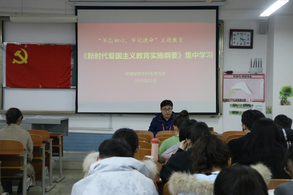“不忘初心、牢记使命”主题教育之《新时代爱国主义教育实施纲要》集中学习活动于JC101开展。我院本科生党支部书记张洪孟主持本次活动,老虎机