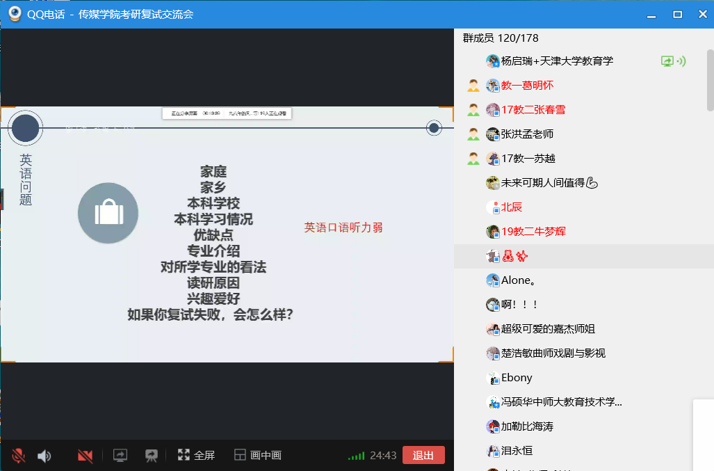 2020年教育技术学专业考研复试经验线上分享会圆满结束。本次会议从复试的各环节为学生提供了详细的指导,解答了学院教育技术学专业学生考研过程中存在的问题,对于坚定教育技术学专业学生考研信心,提高专业考研复试技能具有促进作用。