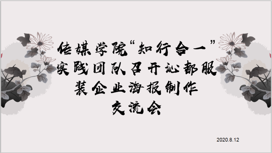 “知行合一”实践团队的一期宣传海报制作工作圆满完成。通过此次实践活动,队员之间的配合更加默契,实践效率得到了显著提高,同时对于海报制作的相关技巧也有了更深入的了解。8月12日16:00,“知行合一”实践团队再次召开线上会议,旨在商讨沁都服装企业宣传海报的筹备工作,会议总结了前期海报制作中出现的问题并进行整改,安排了本次海报制作的责任分工情况,以期达到团队提高效率与质量、更好配合企业宣传工作有序开展的目标。