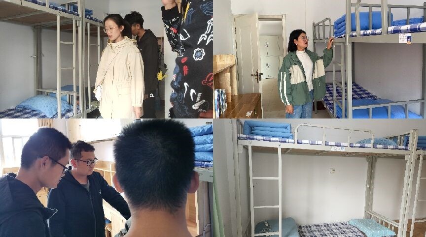 来到学生宿舍,乔希首先仔细检查了宿舍卫生、安全等方面的状况,指出了书本摆放等诸多细节存在的问题,并亲身为同学们整理被褥、摆放书本。此外,在查看男生宿舍时,由于其独特的厅式宿舍构造,乔希格外强调了宿舍大厅的物件摆放问题,要求保持大厅的整体洁净。与此同时,在检查2020级新生宿舍时,刘扬帆、商秀英重点检查了床铺被褥是否整洁以及书桌物品的摆放是否符合标准。针对检查过程中发现的问题,两位辅导员表示,希望同学们有则改之,无则加勉。