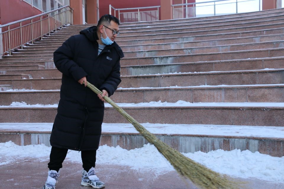 本次扫雪的重点区域为阳光会场,该区域积雪覆盖面积广,道路结冰严重且人流量大,给师生出行造成了极大困扰。老师及学生们携带扫雪工具,到阳光会场进行扫雪活动。他们弯着腰,用扫帚扫去冰面上的积雪。由于过往行人的踩踏,大部分积雪已牢牢贴紧地面,难以扫除,增加了清理难度。老师和学生便用铁锹铲,用锤子凿,他们鼻尖通红,手指僵硬,却依旧干劲十足。经过师生们的全力配合,认真清理,阳光会场的积雪已被清理完毕,干净的会场与努力的师生们构成了冬日里一道亮丽的风景线。