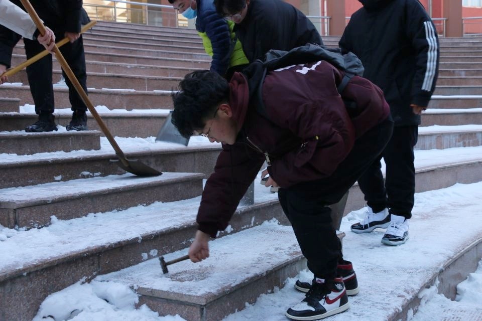 于12月30日14:00开展了扫雪除冰活动。党委副书记徐正伟,辅导员绪慧敏、乔希、刘扬帆、商秀英带领部分学生干部参与了本次活动。