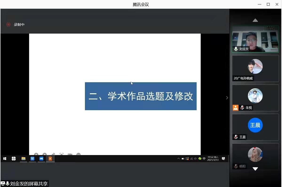 会议伊始,赵可云院长对刘金发院长的到来表示由衷的感谢和热烈的欢迎,并对其进行了详细的介绍。随后,报告会进入正式的经验分享环节。刘金发院长主要围绕创业计划书撰写和学术作品写作两方面展开,着重介绍了创业计划书撰写的五点注意事项,并结合具体案例,提出针对性建议。他表示,学生可通过跨院合作的方式参加比赛,弥补知识短板,发挥各自的专业优势,提高获奖概率。针对学术作品选题,刘金发院长提醒参赛学生应首先了解比赛涉及的三类作品,并通过分析第十六届“挑战杯”大赛获奖作品,得出获奖作品应具有指向性,选题应结合时事、抓住社会热点问题等结论,提醒学生在具体操作前应明确选题方向,抓住关键词,必要时可以另辟蹊径,将选题的角度投向国外。在学术作品撰写方面,刘金发院长特别强调,作品标题要相对醒目,主标题可将感性与理性结合,副标题应体现工作量。会议最后,绪慧敏老师进行总结发言,并与赵可云院长一同对刘金发副院长的经验分享表示再一次感谢。