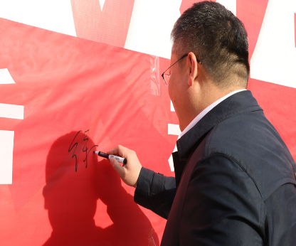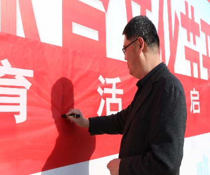 仪式伊始,主持人刘扬帆简要介绍了本次阳光体育月活动的主题和目的。随后,王宏杰主要强调了体育锻炼对当代大学生人格完善、增强体魄的积极作用。针对目前大学生蜗居宿舍的现象,王宏杰表示,希望学生们能走下网络、走出宿舍、走向操场,展现传媒学子应有的风采。徐正伟则对后续活动安排进行了统一说明。他提到,学院相关部门要切实完成体育工作计划,在坚持日常早操锻炼的同时,通过自主训练和春训锻炼等途径加强身体素质,并表示各球队也应加强专项训练,争取在主要赛事中获得佳绩。其后,学生代表杨超帅宣读活动倡议书,呼吁学生重视每一节体育课,积极参与体育活动。最后,领导老师、到场学生依次上台于横幅签字,宣告阳光体育月活动正式拉开帷幕。