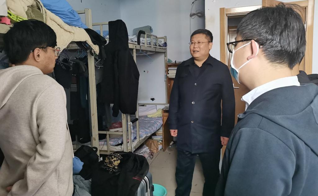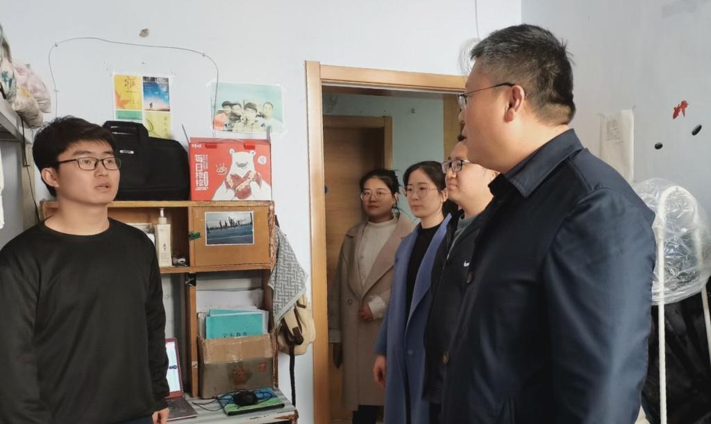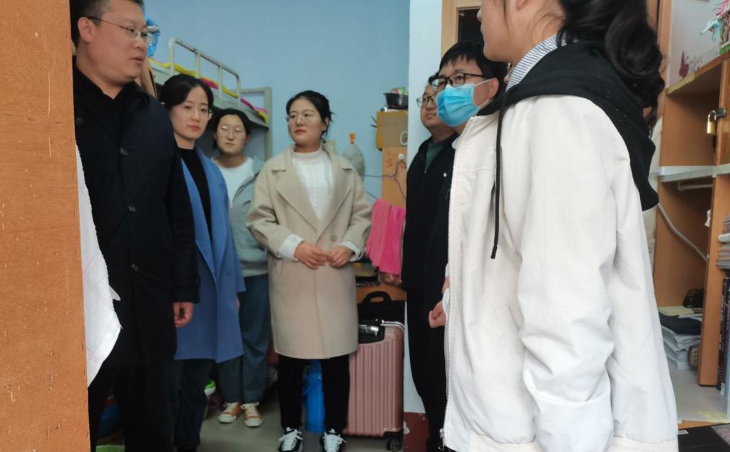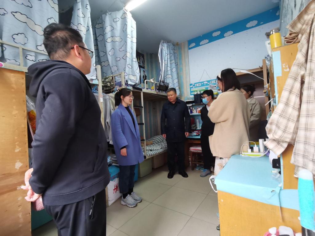 党委副书记徐正伟,辅导员张洪孟、乔希、商秀英、刘扬帆集体前往毕业生宿舍走访看望毕业生的学习和生活状况。