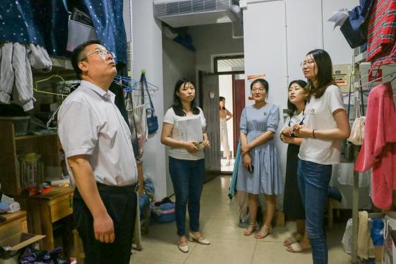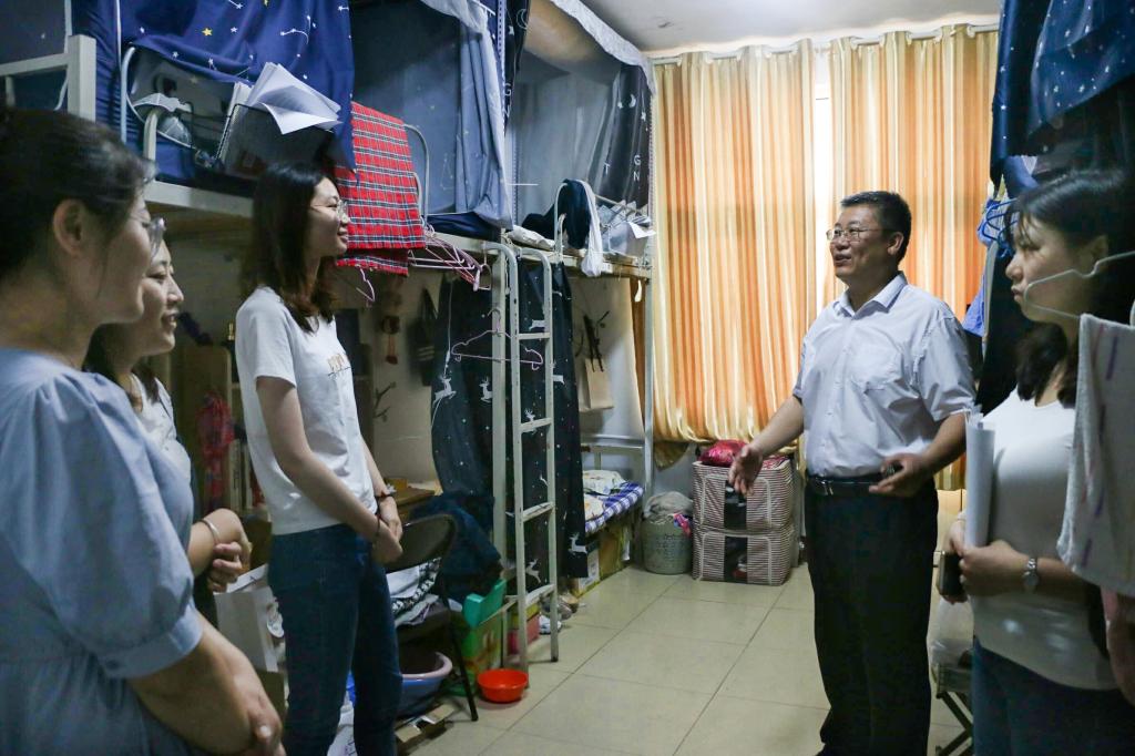 党委副书记徐正伟,辅导员绪慧敏、乔希、商秀英前往文泽园2018级教育技术学学生宿舍,看望支教结束返校的同学。