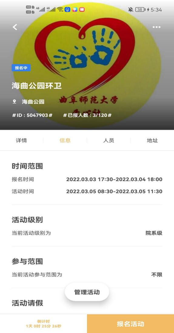 活动过程中,3月3日至4日,爱心社利用官方QQ账号进行活动预热工作,社员们积极报名参与。3月5日下午,爱心社的志愿者们在统一集合后,乘坐公交车准时抵达目的地,以3至5人的小组为单位,每个小组负责一片区域,进行环卫工作。志愿者们不仅在走过热闹的游乐园,同样走过清幽的小道,将道路及草坪上的垃圾扔进垃圾桶,将道路旁较大的树枝将树枝移至别处,避免路人划伤或绊倒等。活动结束后,社员们在海曲公园门口合影留念。
