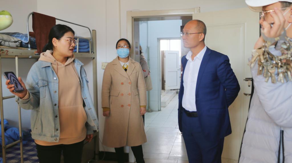 领导老师前往学生宿舍进行检查。学院党委副书记田荣林和学院全体辅导员参与开展相关工作。