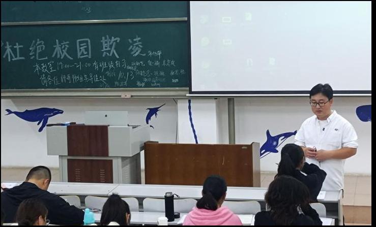 本次班会以“防溺水,防欺凌”为主题展开。从校园暴力的概念入手,结合刑法条例,各位辅导员从校园暴力的发生原因、危害后果与应对措施三方面重点强调了“反对校园欺凌、构建和谐校园”的重要意义。田荣林提出,孤立、造谣、冷暴力作为校园暴力的一部分在如今时有发生,学生之间应学会和睦相处,出现问题及时调解,或者与辅导员联系进行沟通疏解。结合案例,辅导员以理论和实际相结合的方式讲授了大学生防溺水的重要性,同时提醒同学们,秋季水域地区危险系数高,同学们应尽量减少海边嬉戏,结伴出行,始终将人身安全放在首位。
