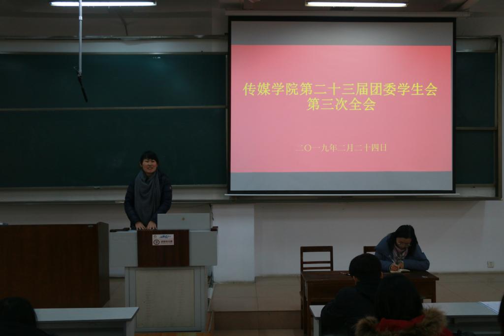 第二十三届团委学生会第三次全体会议在JA305顺利举行。学院团委书记、2018级辅导员张守荣,2015级辅导员张风姣出席本次大会,第二十三届团委学生会全体成员参加本次会议。