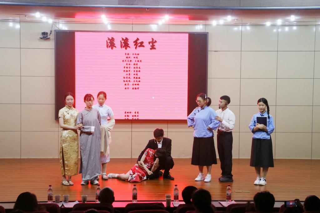 舞蹈队带来舞蹈《金陵十三钗》后,话剧汇演正式拉开帷幕。新闻二班和新闻一班分别演绎的《风雪夜归人》,讲述了民国梨园带给达官贵人的戏剧声色,赞扬了梨园戏子反抗封建牢笼的精神。新闻三班带来的《上海屋檐下》通过对生活在上海的小人物的悲惨遭遇和喜怒哀乐的演绎,揭露了国民党统治下的黑暗现实。《北京人》以一个典型的没落士大夫家庭的经济衰落为背景,由新闻一班的同学共同演绎,体现了家庭中善与恶的冲突。新闻三班演绎的另一部话剧《滚滚红尘》,极具感情纠葛,家国利益与个人情感的激烈碰撞,让人印象深刻。汇演结束之后,王成一老师进行了重要点评,肯定了同学们的努力付出。