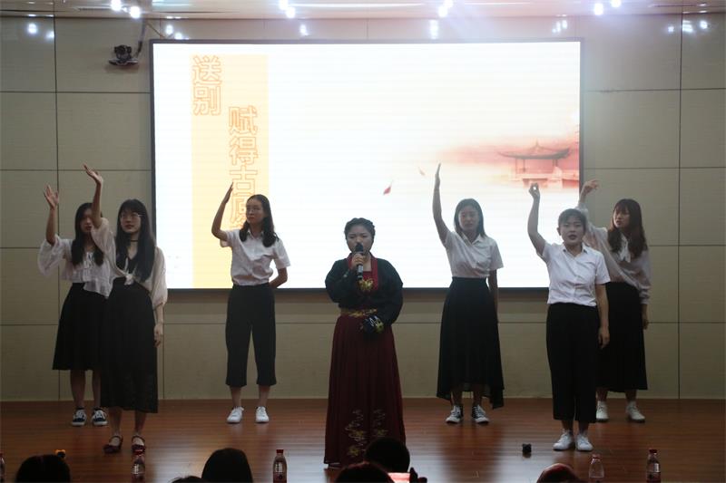 水袖舞《采薇》向同学们展示了古风雅韵,随后诗词表演大会正式拉开帷幕。《白了太白头》和《终南山奇遇记》带领同学们纵观诗人李白和王维的灿烂一生。《诗经串烧》搭配生动的剧情表演,诗经中爱情的美好与离别的悲伤混合融入同学们的心房。古琴曲《卧龙吟》和着琴声使观众感受卧龙先生的豪情万丈。《胜日寻芳飞花令》更为同学们展示了诗词文化的深厚底蕴,促进了同学们对传统诗词的了解。由漪兰传统文学社带来的汉服走秀向同学们展示了东方文明的娇弱之美和四千多年华夏服饰文明的博大精深。《钗头凤》中展示了陆游和唐婉相爱却不能相守的悲凉。表演结束后,由老师为获奖的节目进行了颁奖。