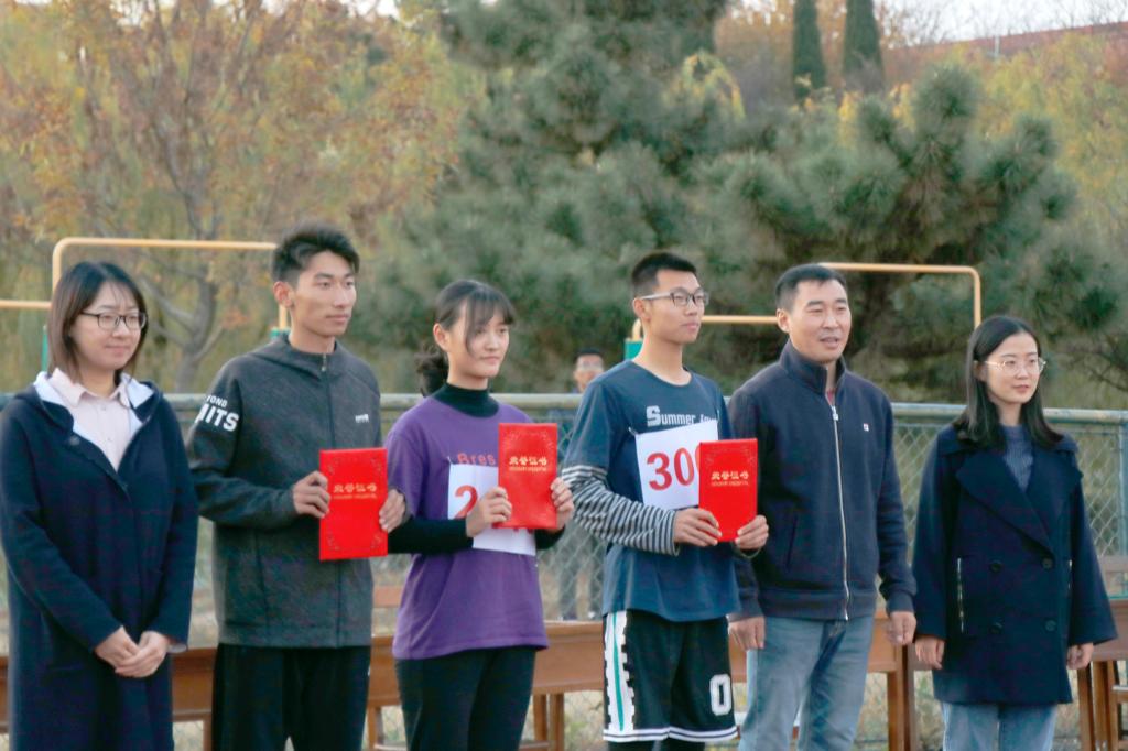 16级辅导员张洪孟、18级辅导员绪慧敏、19级辅导员乔希,经济学院19级辅导员王婧娴。各学院19级新生参加了本次运动会。