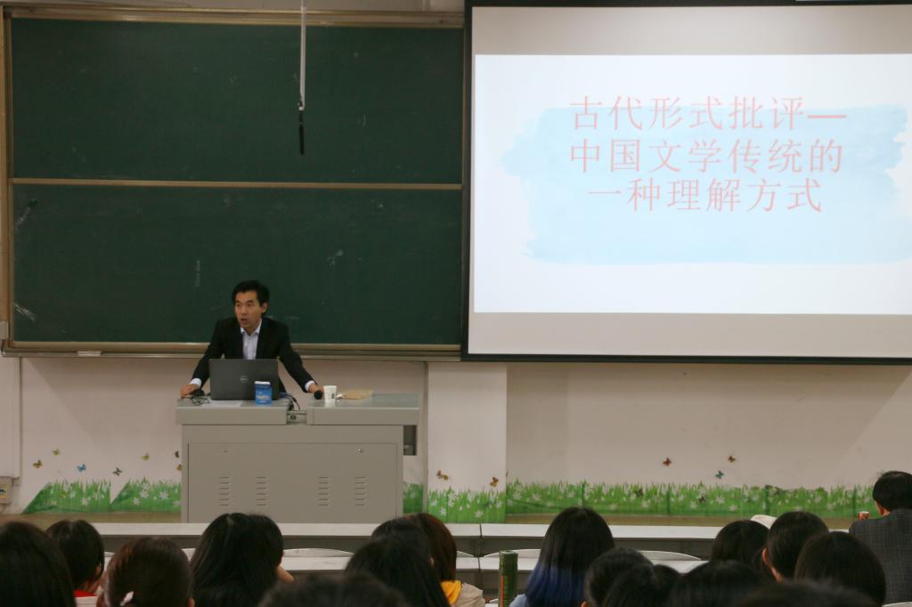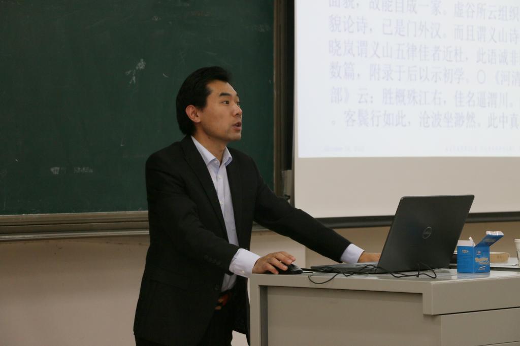 王汝虎教授首先讲述了以格律体式章法句法为核心的评点方式,并以李商隐的诗为例子向大家作出了具体解释。随后,王汝虎教授从中国古典形式批评之界定、对象、特征、诗学形式批评功能与意义这几个方面具体阐释了其报告的核心内容。在此过程中,王教授不只是单纯介绍相关理论,而是借用诗人的诗作名篇对所授理念做了生动的阐述,并以上海书店为例在讲课过程中将古代文学与现实生活相结合。讲座过程中穿插着王教授于复旦大学图书馆内拍摄的书籍照片,足以表现出王教授为学的细致与准备讲座时的用心。