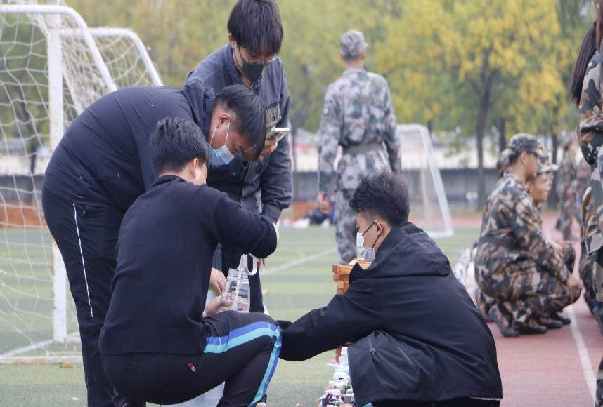 军训首天,训练项目包括:立正、稍息、停止间转法、齐步踏步走等。从最简单的立正稍息开始,教官精益求精,一遍又一遍的认真教导。学生们也按照教官的指令,一令即动,高效完成教官安排的各项任务。教学过程中,教官严谨教学过程,亲自示范,严格要求,耐心教授各个动作要领,将军人精神贯彻到每个训练项目之中。在后勤保障工作中,值班同学将后勤工作落到实处,尽可能多的为新生提供服务和帮助,包括为身体不适的同学准备葡萄糖、为军训中的新生及时添水等。大家各司其职,军训正在有条不紊的进行。