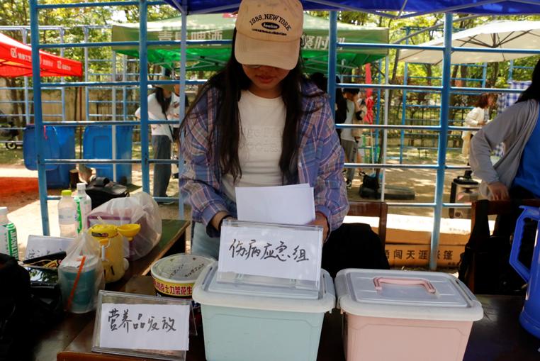 本次运动会中,由学院领导老师和团委学生会全体成员共同组成多个工作小组负责后勤保障工作。在老师的带领下,小组成员明确岗位工作职责,有序进行各项工作,统筹安排好相关事宜,确保比赛期间每个环节都有专人保障。在运动会过程中,后勤工作者们。积极为运动员服务,保障药品、矿泉水等必需品物资充足,随时准备应对紧急情况,及时搀扶不慎摔伤的运动员,为他们细心处理伤口,做运动员们坚强的后盾。
