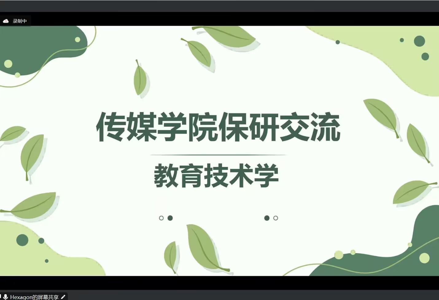 于线上组织开展了教育技术学专场考研经验分享会,邀请优秀考研学子分享考研经验。2019级胡盈盈、王佳宁、张乐康担任本次分享会的主讲人。2020级教育技术学专业全体学生参加本次分享会。