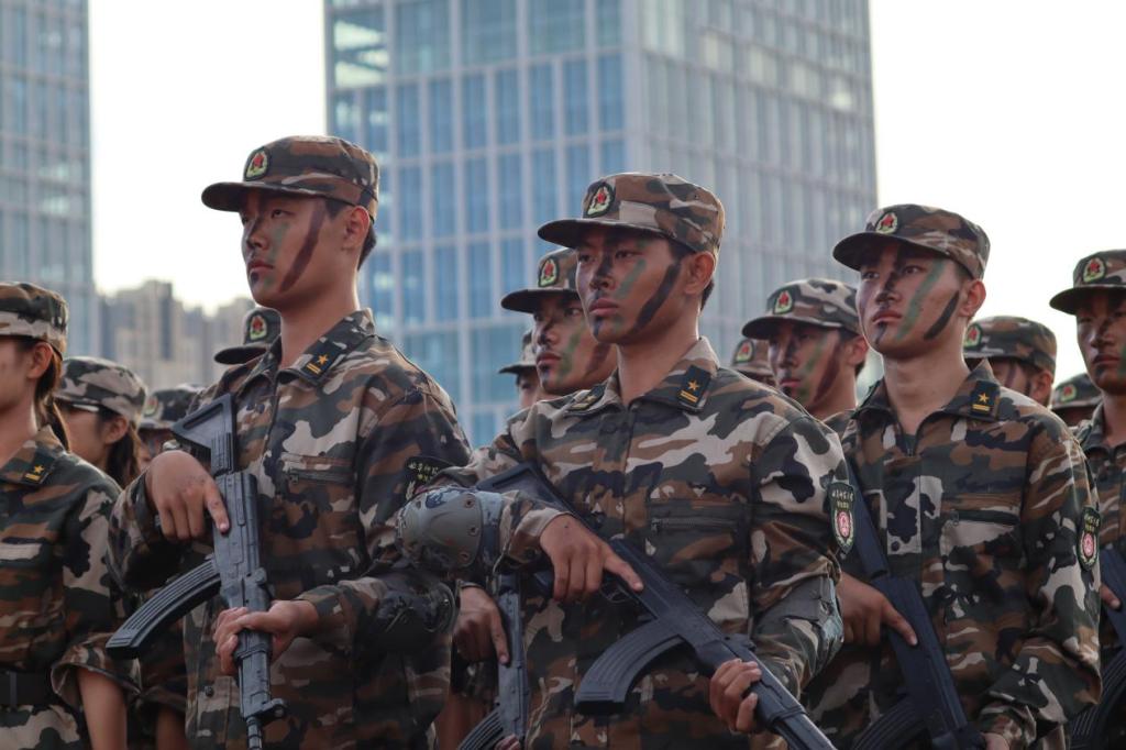 在庄严的国歌中,新生军训汇演拉开帷幕,各学院的方阵严阵以待,蓄势待发。传媒学子一身迷彩戎装,精神昂扬、意气风发,“一!二!三!四!”,嘹亮的口号响彻校园。学院方阵迈着矫健的步伐走向主席台,新生们精神抖擞、朝气蓬勃,动作整齐如一,展现了军训的显著成效。台前,在教官的指挥下,方阵表演了稍息、立正、停止间转法、跨立、立正以及三大步伐等动作,接受与会领导与总教官的检阅,充分展现了学子的坚毅精神和军人般的飒爽英姿,得到了主席台上领导们的一致赞扬。