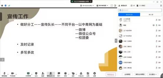 于线上召开2023暑假社会实践线上交流会议。会议由义工与实践部部长张磊主持,魏露、张官怡等实践队代表队长进行实践分享。
