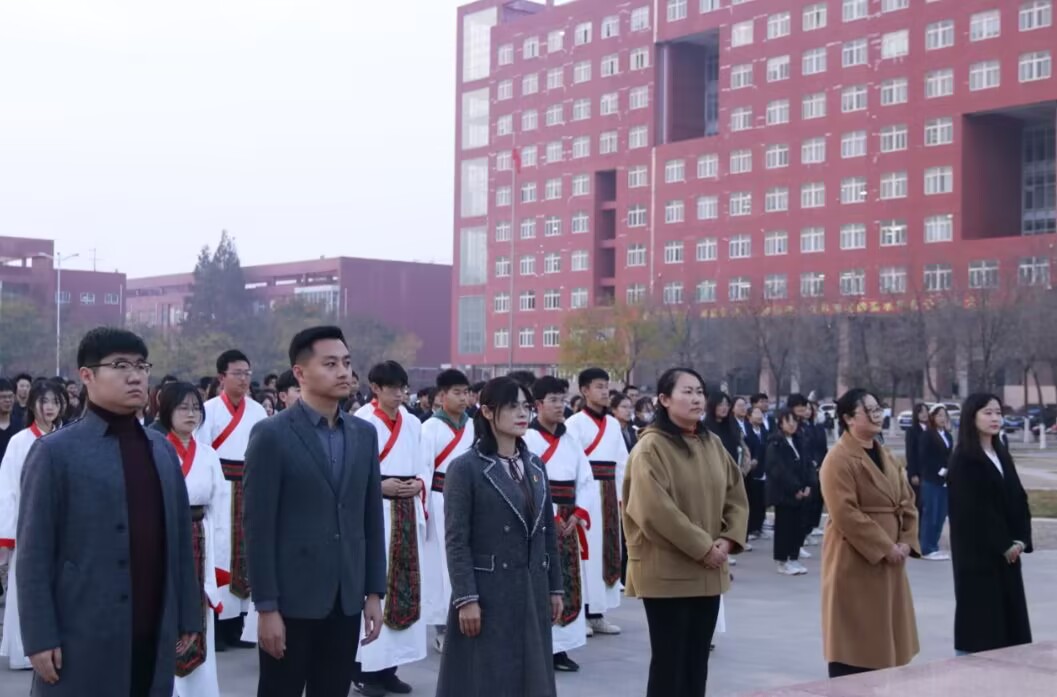 和计算机学院于孔子像前共同举办2023级新生成人礼活动,计算机学院团委书记于运清、老虎机
