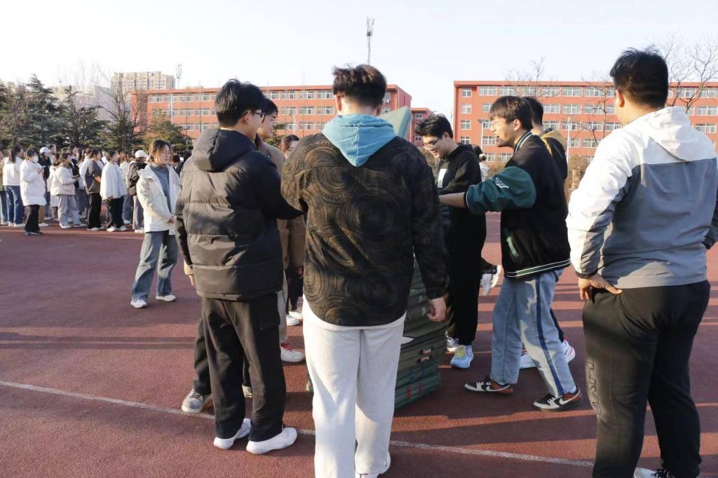 体育部的部员们负责组织春训学生进行训练,尽心尽力,有序高效。在周浩阳示范拉伸动作过后,他们时刻关注动作不规范的同学,及时给予悉心指导,帮助同学们正确拉伸,避免受伤。