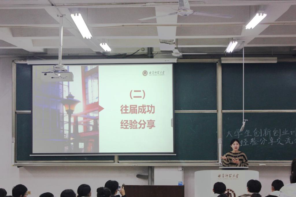 会上,郭晋菡向学生们详细介绍了创新创业类比赛的基本常识。郭晋菡梳理了挑战杯、中国“互联网+”大学生创新创业大赛、大学生创新创业训练计划项目等多项在校可参与的创新创业类比赛的参赛时间、含金量、获奖难度,她建议提前了解各类比赛的时间、基本流程、组别设置、赛程安排等问题,明确对比赛整体的规划。同时,郭晋菡提供了创业类商业计划书模板,并进一步介绍了项目计划书撰写的注意点,包括选题的确定、资料的来源、内容的设置、图表的运用等。
