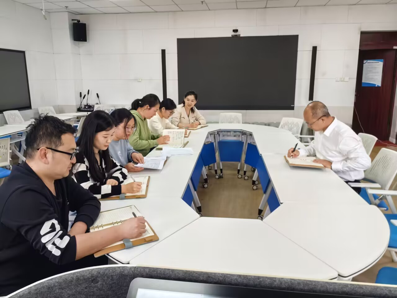 校园运动会临近,田荣林介绍了运动会道德风尚奖的各项评选要求,谈到辅导员要及时做好值班工作安排,密切观察学生的身体状况、运动表现,预防各类可能存在的安全隐患,保障运动员安全;重视开幕式体操、方阵的呈现效果,展现出传媒学子奋发向上、砥砺前行的精神风貌。他还传达了山东省教育厅体质健康抽查的通知,认为辅导员要从关心学生、提高学生身体素质的角度出发,努力提高学生体育锻炼的自觉性,稳妥做好学生体质健康测试工作,有效提高学院学生体质健康水平。