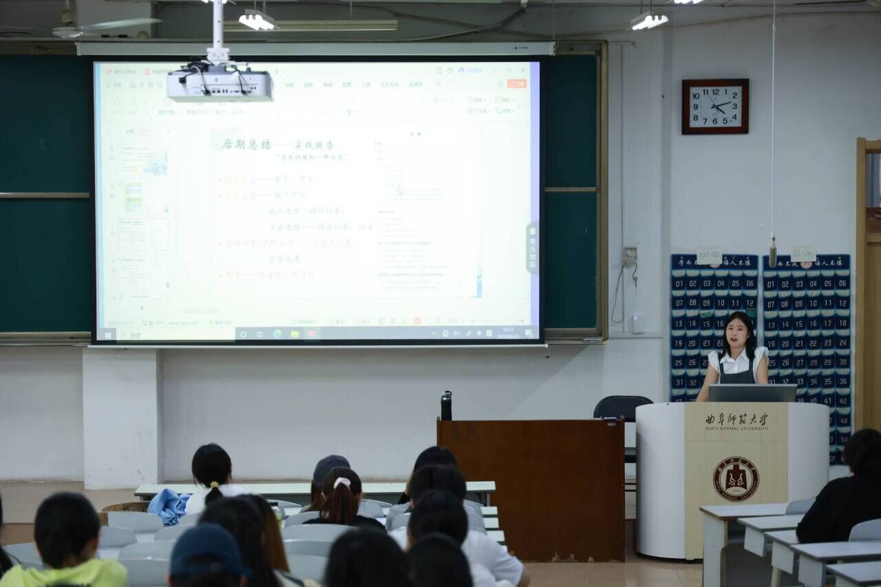 优秀学生代表魏露、王舒心、崔震奇进行了社会实践活动的讲解和经验分享。
