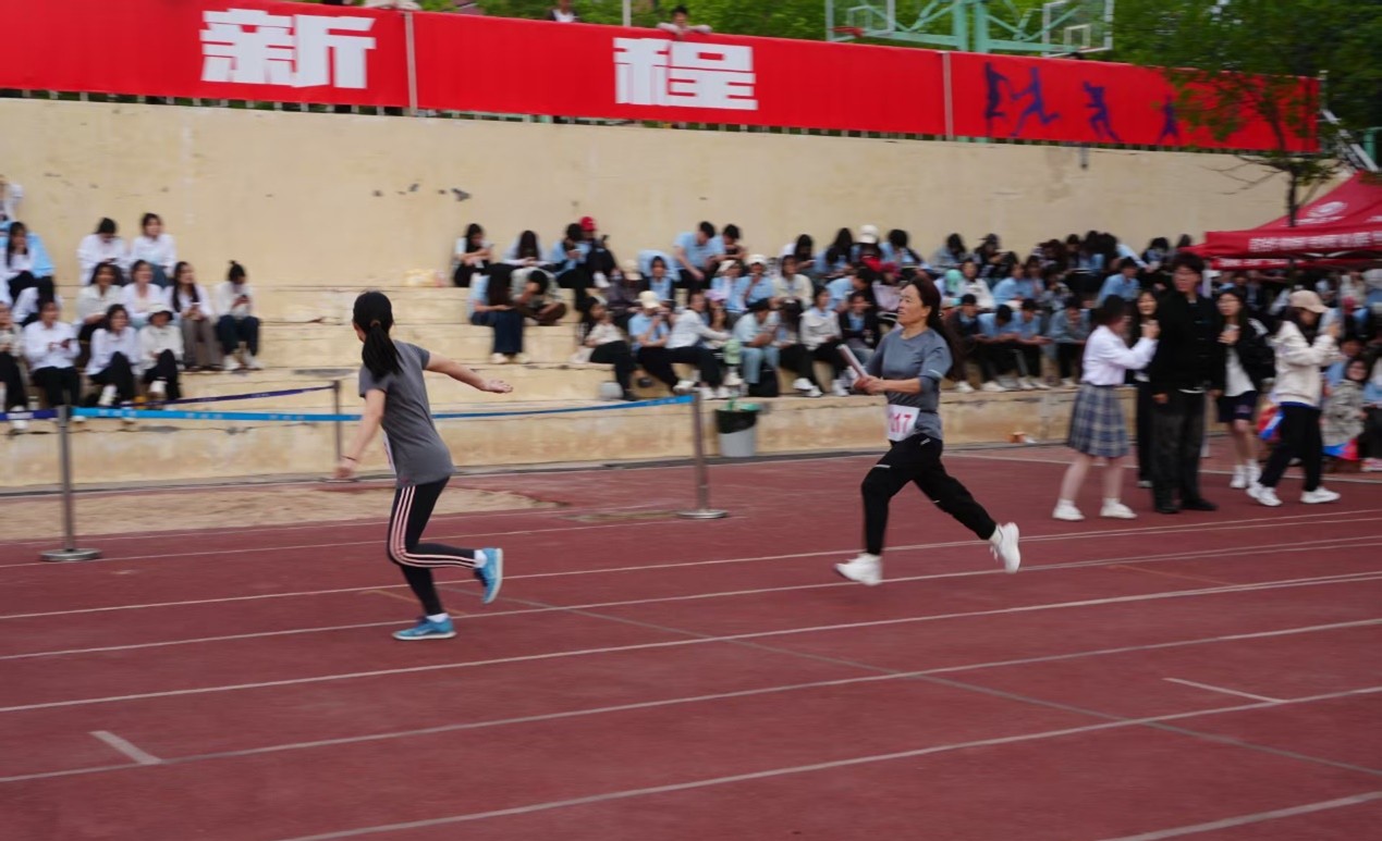 在运动会中,教职工们也积极参与,接力赛场成为展现他们团结的最佳舞台。他们的目光紧盯递来的接力棒,手掌精准对接的瞬间,速度与信任完成无缝传递。每一棒的传递不仅是速度的延续,更是团队精神的具象化,赛道两旁的呐喊声此起彼伏,将现场气氛推向高潮。
