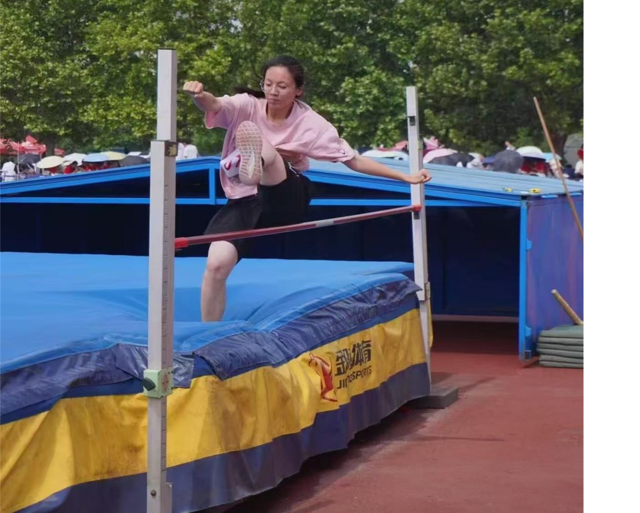 跳高比赛里,运动员们在助跑后,高高跃起跨越横杆。他们不断挑战新高度,每一次跳跃都是对自我的突破。