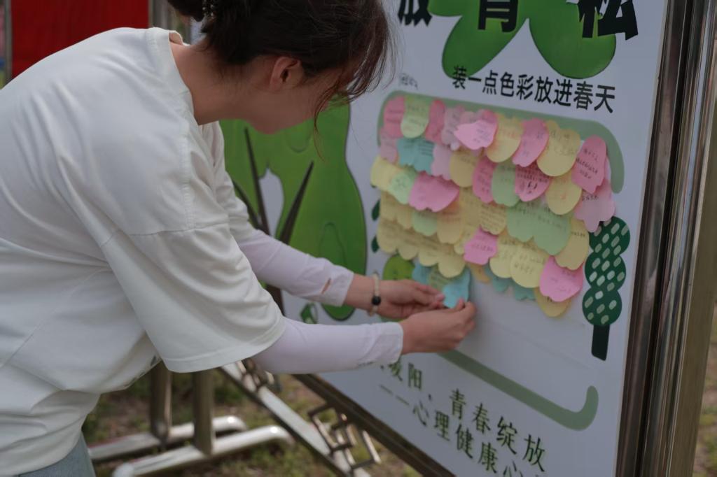 心理健康服务部于西操场开展了为期两天的“心灵暖阳,青春绽放”心理健康主题“心灵树”活动。