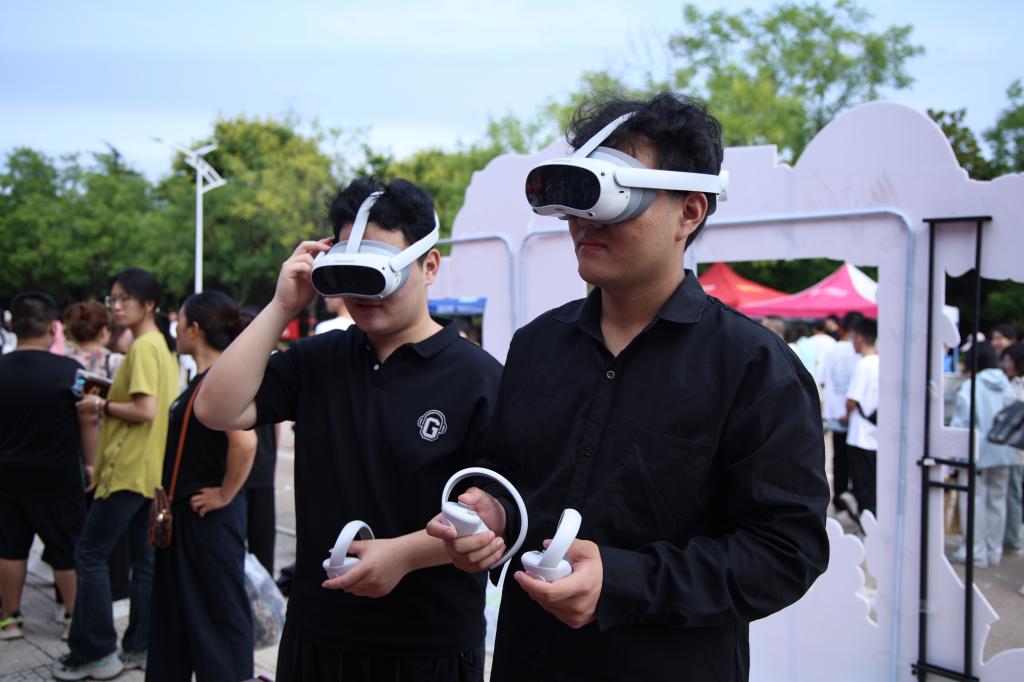 迎新大本营化身为科技体验前沿阵地,“VR虚拟游园体验区”引来众多新生驻足。新生佩戴专业VR设备,一览校园美景,充分体现了学院特色设备,展现了老虎机