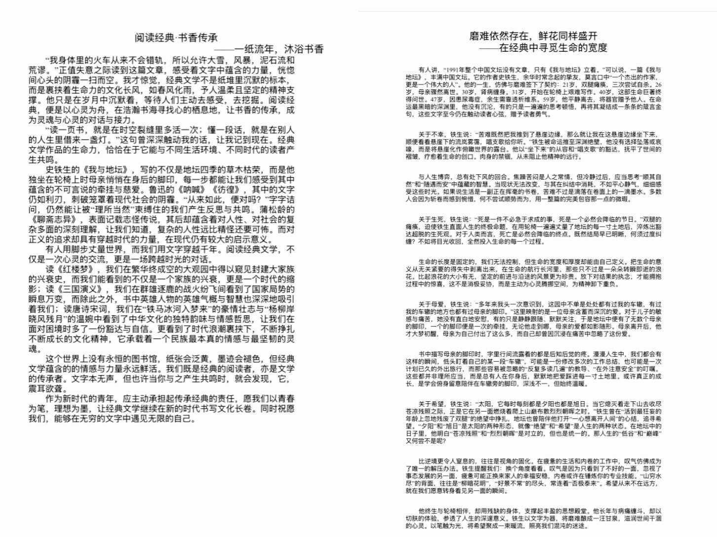 本次活动鼓励学子以笔为媒,围绕经典文学作品的阅读感悟展开创作。来稿佳作纷呈,字里行间体现出对经典的深刻理解与个性诠释,展现了传媒学子对文学经典的热爱和传承意识,也生动反映了经典阅读对青年学生的思想启迪。经过专业评审团的严格遴选,最终评选出一等奖五名,二等奖八名,三等奖十名。