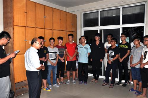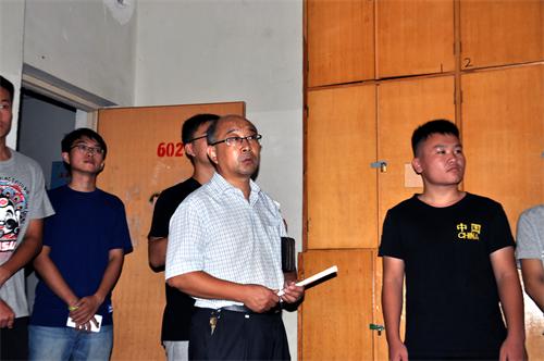 老师和导员们分成两队,在男生宿舍和女生宿舍分别进行看望,肖龙航、张洪孟与同学们进行了亲切的交谈,详细询问了学生的家庭情况、入学报到情况以及对学校环境的适应情况,认真耐心地解答了学生提出的各种问题。并且嘱咐同学们要经常给家里打电话。肖龙航着重强调一定要树立安全意识,把安全问题放在首位,保护好自己的人身和财物安全,杜绝加入传销组织,以防上当受骗。在看望新生的过程中肖龙航仔细检查了学生的用电安全,提醒学生宿舍物品损坏一定要及时报修。