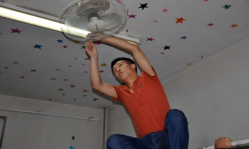 主席团分为两队,分别在女生宿舍和男生宿舍进行看望。在女生宿舍,张晓瑜教授新生叠被子的技巧,同时向新生们讲解了有关宿舍使用违规电器的案例及处罚,也向新生推荐了大学城周围不错的小店,与新生的关系更加亲近。团委副书记徐嘉弈认真统计了新生宿舍物品的损坏情况,并查询了宿舍晚归情况,同时叮嘱新生要好好休息,以饱满的精神迎接之后的军训以及大学生活;在男生宿舍,主席询吴嘉昕询问了新生有关宿舍是否还住得习惯,宿舍是否有需要维修的地方等问题,了解了新生军训训练项目的问题,并问候了在军训战术方队受伤的同学,叮嘱其要好好休息。副主席胡忠堂亲自上手,为新生修理好了风扇,并帮个别宿舍修理了阳台门窗。最后主席吴嘉昕让新生们注意作息时间的安排,早睡早起。