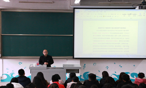 首先,肖龙航以“境界和气质”为主题开始进行讲解。他要求每位学生干部应做到“女生要有韵味,男生要有气质”,注重自身内在精神世界的培养,重视自己的品行。接着,肖龙航指出在理论层面学生干部应具有“境界、修养、品行、定位”的基本素养,并对每一个词语的深刻内涵进行讲解,对各词语间的关系进行分析。同时肖龙航引用中国革命年代的事例对这四个词语在工作实践与应用中的体现进行阐释。随后,针对理论层面的基本素养,提出详细的要求,他强调:“要阳光,提高自己的品行和工作素质;要反思自己;工作要勇于担当,成绩要与他人分享;做事要细心,注重方法的创新,对工作要进行规划和总结;要有魄力,多读书多实践……”。最后,肖龙航宣布第七届学生干部培训班圆满完成,指出学生干部培养是一个“大浪淘沙”的过程,希望2016级学生干部能够把握机会、锻炼自己,并同2016级辅导员张洪孟一起为2016级学生干部代表颁发结业证书。