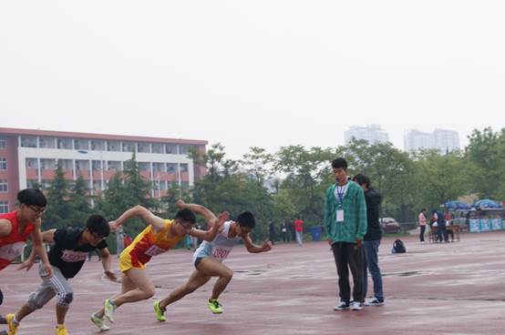 随着一声哨响,运动员们摆好姿势,全身戒备,在枪响的那一刻,运动员们如离弦的箭,以飞一般的速度冲了出去。奔跑吧!传媒健儿,你们是最棒的!