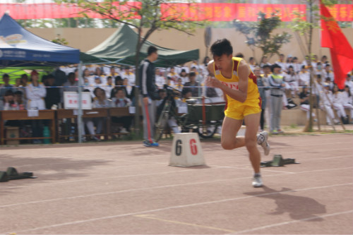飞奔在跑场的,就是“展翅高飞”的高鹏飞,他凭借惊人的速度和赛场爆发力,以11秒51的成绩荣获学生男子组100米决赛的第一名。如同一只雄鹰,飞在湛蓝的天空。