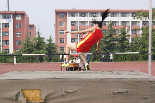 跳高场上,一抹红色的身影如飞燕般轻盈,一跃而上。没错,她就是朱竹。在女子跳高决赛中以146的成绩问鼎冠军并成绩打破了校记录。