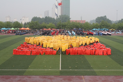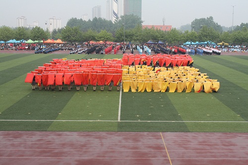 由运动健儿们组成的“NO.1”样式的方队雄赳赳气昂昂的走过主席台,它象征着更快、更高、更强的运动精神,也象征着团结友爱、合作互助的体育精神。