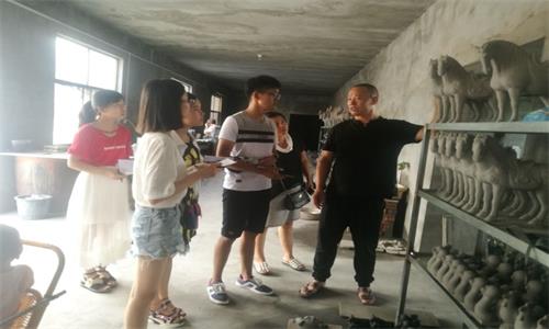“缘定三生,锦绣三彩”暑期社会实践团队到达洛阳市孟津县朝阳镇。朝阳镇的南石山村是中国唐三彩文化第一村,该村的唐三彩仿古技艺精湛,产品曾被当作礼品被国家领导人赠给外宾,仿古工艺品产业是该村的主要经济支柱。经乡政府的帮助,团队到达了张师傅的三彩联合研发基地。