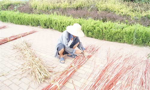 8月17日,曲师大席如人生社会实践团赴青岛泊里常河店村展开调研。一进村子,队员们便发现房屋的墙壁上有关于红席的简介和图画,以及“古老红席铺富路”等字样,让人感受到村子浓浓的文化氛围。据了解,泊里红席可追溯到两千多年前的战国时期。相传,孙膑遭庞涓陷害后,避难来到泊里的一农户家,为报知遇之恩,孙膑便琢磨着把高粱杆劈成篾子,编成席子,铺在炕上,并把手艺教给当地人。后来,这门手艺便世代因袭,流传至今,孙膑被席匠们当做“祖师爷”,泊里也成为“红席之乡”。村里有一个小型的红席展览馆,里面有关于红席的详细介绍和实物展示等。接下来,我们走访了两户红席工艺人家,陈奶奶和毛爷爷接受了采访。陈奶奶说,她今年七十九岁,从六七岁开始跟从父辈学习编席。席子的原料是不同于普通高粱的“席高粱”,种子是祖辈流传下来的。从春天种高粱开始,抗倒伏,避免高粱杆出现弯曲;到秋天收割,劈篾子;再到编织,经30道工序,这中间哪一个环节做不好都不能编成一领合格的席子。时至今日,一提到编席,陈奶奶依旧热情不减,她不是把编席当成一项任务,而是当成生活的一部分。见到毛爷爷的时候,他正在晒已经劈好的高粱杆。得知爷爷正要去地里收高粱,我们便一同前往。直挺挺的高粱杆,整齐的排放在地里,队员体验了搬运整理高粱杆的过程,方知不易。