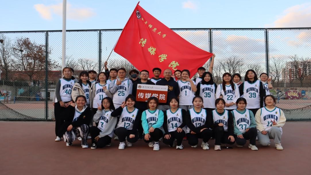 女排与马克思主义学院角逐冠军。党委副书记田荣林、辅导员刘扬帆亲临比赛现场进行指导,为传媒学子加油助威。