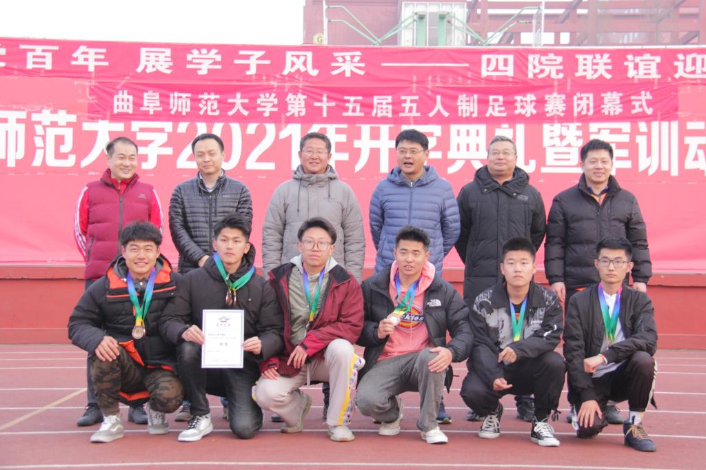 双方互相致敬后,随着哨响,比赛正式开始。比赛伊始,双方竞争激烈,不相上下。因防守失误,上半场我院以1:2暂时落后。中场休息期间,我院男足队员们快速复盘,总结经验教训,针对对方情况做了战略调整和部署,冷静分析,快速调整比赛状态。下半场伊始,我院队员綦凯发角球前插勇夺一分,扳平比分。随后比赛双方有攻有守,你追我赶,比赛进入了白热化。最终,我院在点球大战中力挽狂澜,以4:3击败计算机学院获得五人制比赛季军。