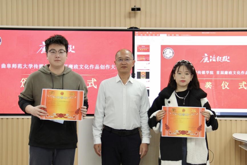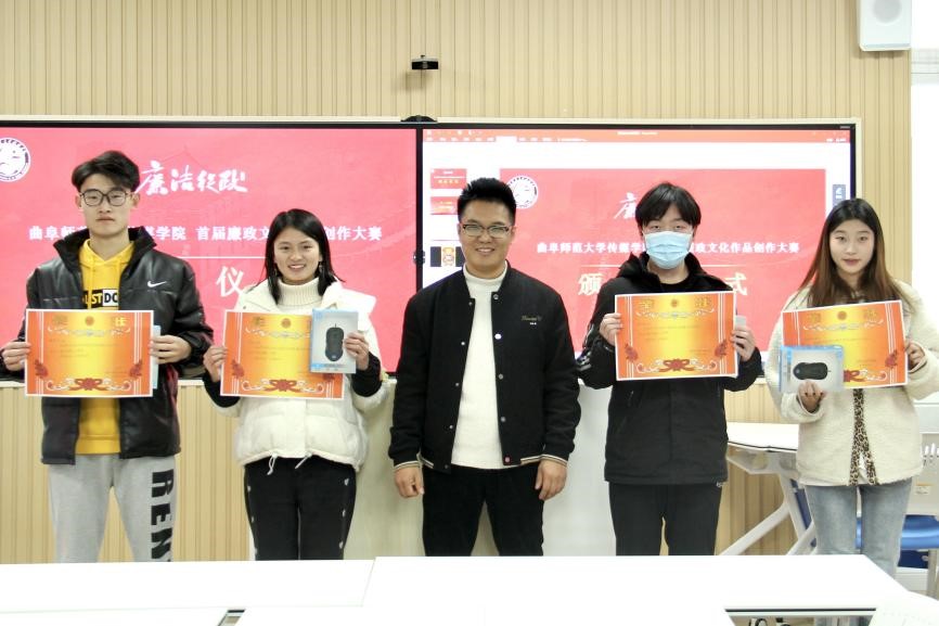 于JC813举办了首届廉政文化作品征集大赛颁奖仪式。学院党委副书记田荣林、教师孔勇、辅导员乔希、刘扬帆出席颁奖仪式并为获奖同学颁奖。
