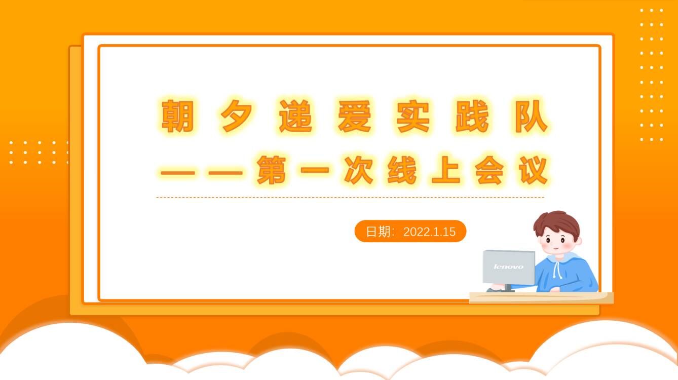 依据以上资料,为探究当代老龄化现状与趋势,弘扬尊老、敬老、爱老的中华传统美德,1月15日晚,朝夕递爱实践队第一次线上会议于腾讯会议平台顺利召开。会议伊始,队长简单介绍了实践队名的特殊含义以及实践活动主题,为本次实践活动指明了方向。随后,队长根据每一位成员的专业与特长对小组成员进行了详细的工作分工,明确了本次实践活动的主要任务。会议最后,队长强调了本次实践活动的一些重点问题,在安全方面,队员在外出实践时一定要戴好口罩,遵守防疫规定;在宣传方面,队员则要注意新闻的书写规范问题,需严格按照新闻写作要求创作宣传作品。